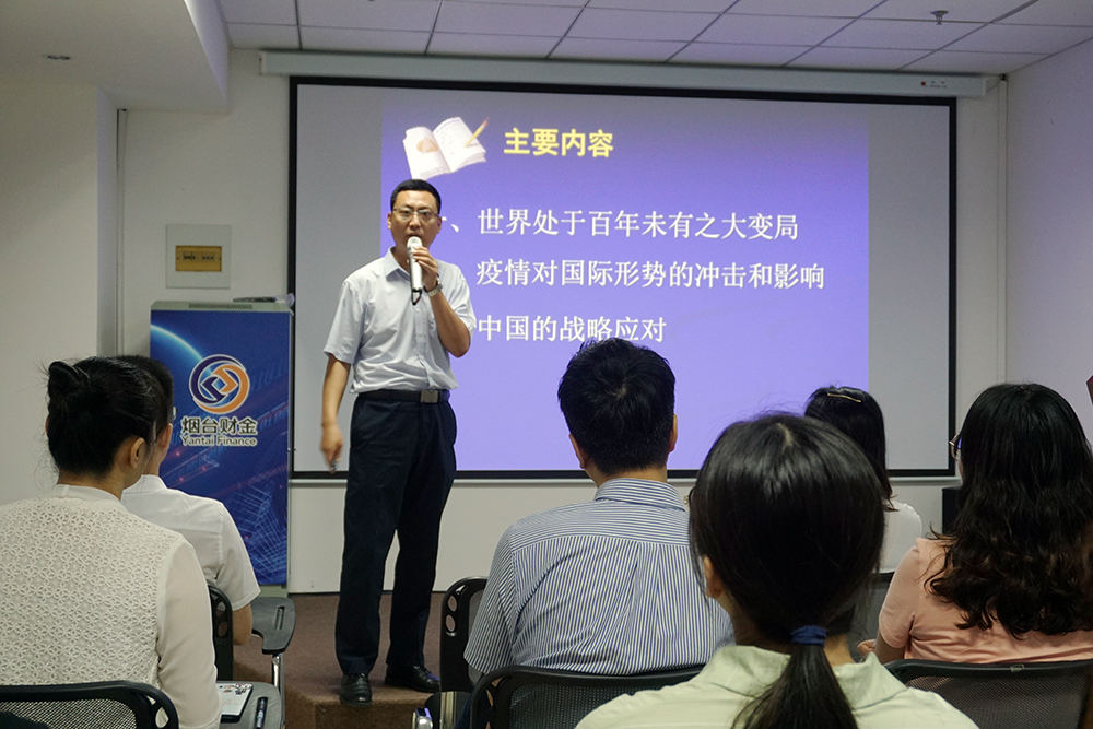 為助力集團(tuán)干部職工拓展視野,增長知識(shí),進(jìn)一步認(rèn)清當(dāng)前國內(nèi)國際形勢,擔(dān)當(dāng)使命,自覺應(yīng)對(duì)風(fēng)險(xiǎn)挑戰(zhàn),7月23日上午,集團(tuán)舉辦了第三期“財(cái)金大講堂”,開展國情黨情和形勢政策教育,邀請(qǐng)到中共煙臺(tái)市委黨校哲學(xué)教研室副主任、副教授劉中興帶來《當(dāng)前國際形勢——疫情沖擊與戰(zhàn)略應(yīng)對(duì)》專題講座。