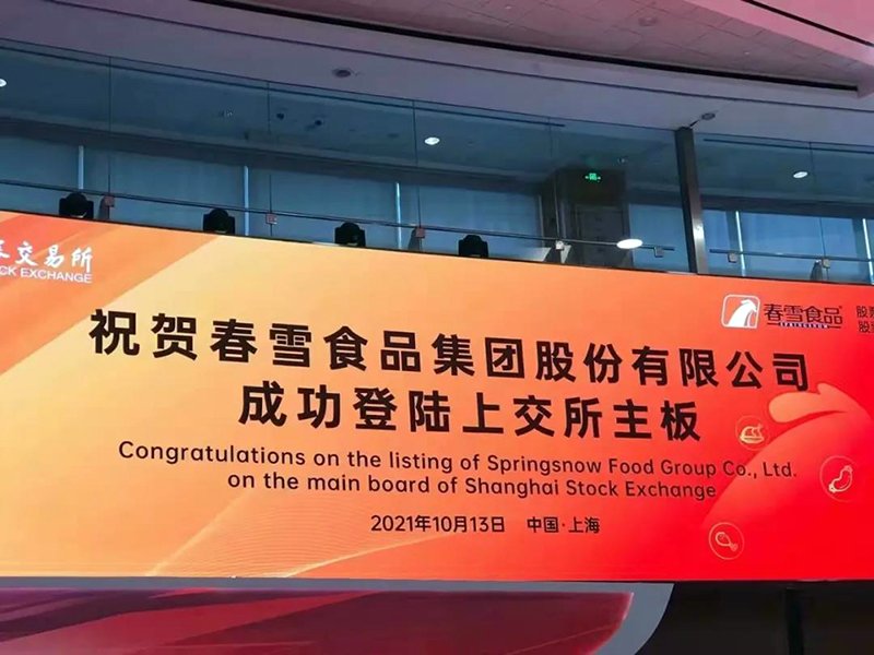 2021年10月13日,煙臺財金集團投資企業(yè)春雪食品集團股份有限公司(簡稱“春雪食品”)于上交所主板敲鑼上市(股票代碼:605567)。這是繼益生股份(002458.SZ)、民和股份(002234.SZ)、仙壇股份(002746.SZ)后,山東省第四只“雞肉概念股”,也是集團投資布局食品行業(yè)領(lǐng)域首家成功上市的企業(yè)。