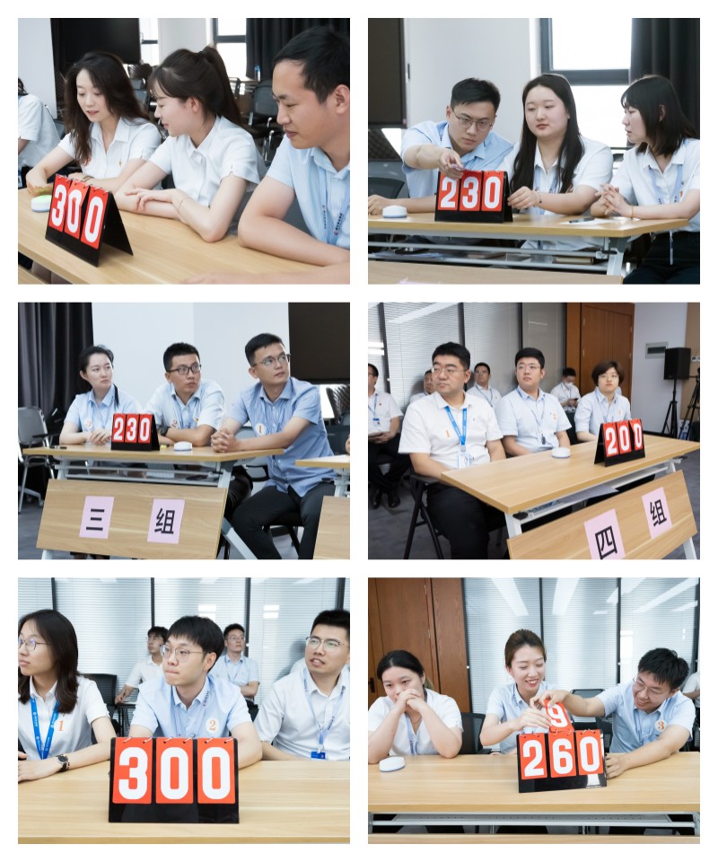 在個(gè)人必答環(huán)節(jié),選手們睿智沉著、對(duì)答如流,勢均力敵;搶答環(huán)節(jié),各組聚精會(huì)神,默契配合,拼腦力、比手速、展實(shí)力,比分“你追我趕”,場上氣氛緊張刺激,掌聲連連;風(fēng)險(xiǎn)題環(huán)節(jié)的驚險(xiǎn)賽制更將比賽推向高潮,各組博弈交鋒,上演了一場精彩的腦力與知識(shí)的“較量”,展現(xiàn)了集團(tuán)員工扎實(shí)的理論功底和良好的學(xué)習(xí)成效。