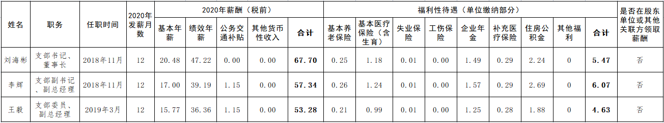 煙臺財金集團負責人2020年薪酬披露信息表(單位:萬元)
