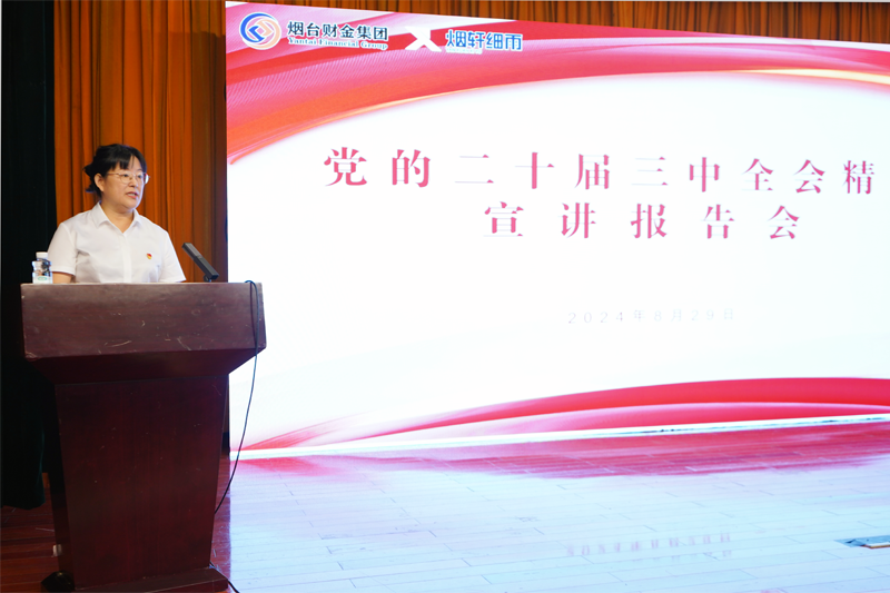 8月29日,煙臺財金集團(tuán)召開學(xué)習(xí)貫徹黨的二十屆三中全會精神宣講報告會。濱州醫(yī)學(xué)院馬克思主義學(xué)院形勢與政策教研室主任曹錫山作專題宣講,集團(tuán)黨委班子成員、外部董事、高級總監(jiān)及各部門、權(quán)屬企業(yè)干部職工等近150余人參會。
